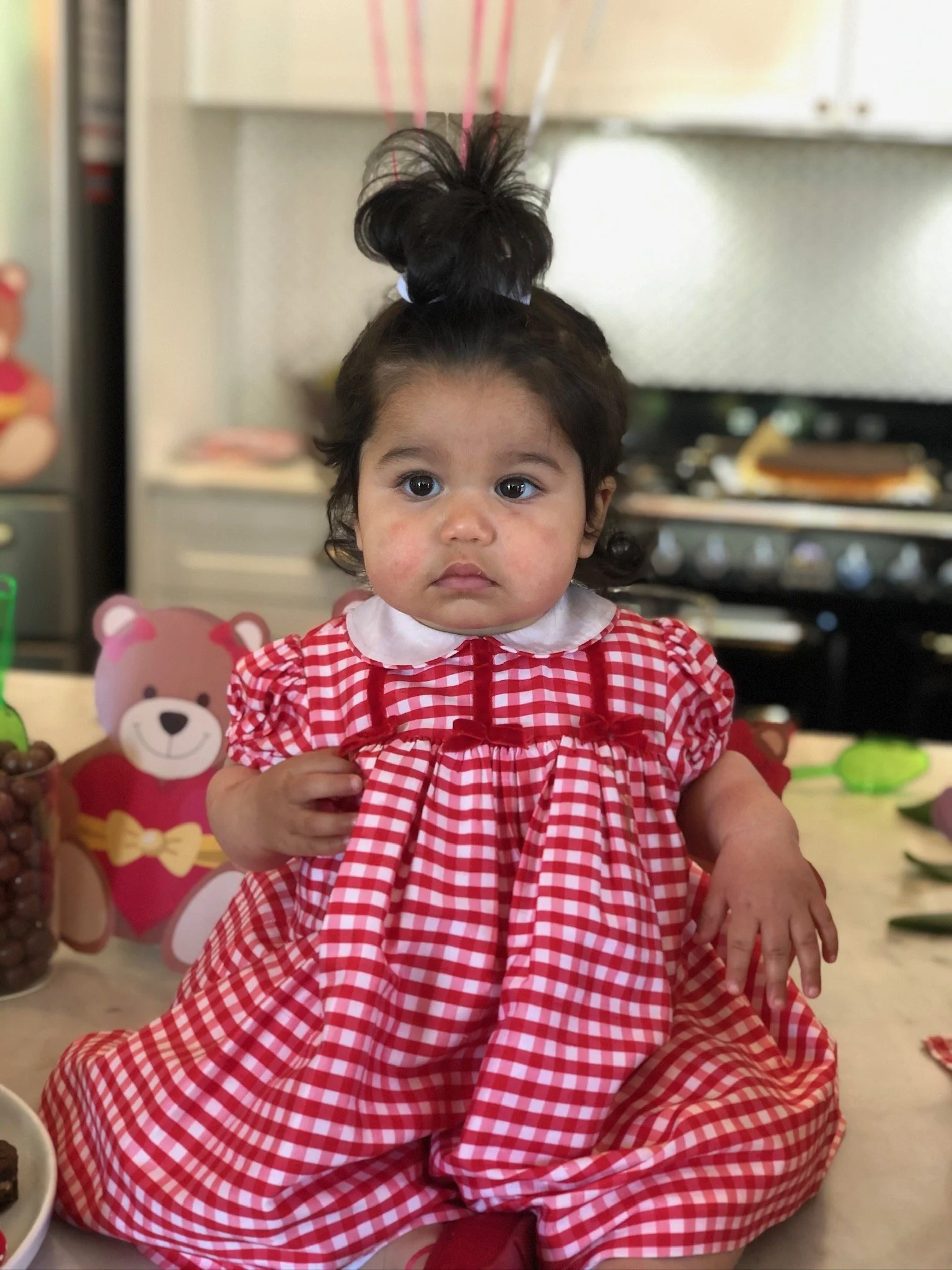 Before my eldest, Nawal, turned one, I found the perfect birthday party dress from British designer, Patricia Wiggen. A red and white gingham print with a collar and bow details, it was the perfect party dress for a little girl celebrating her first birthday with a Teddy Bear’s picnic theme.