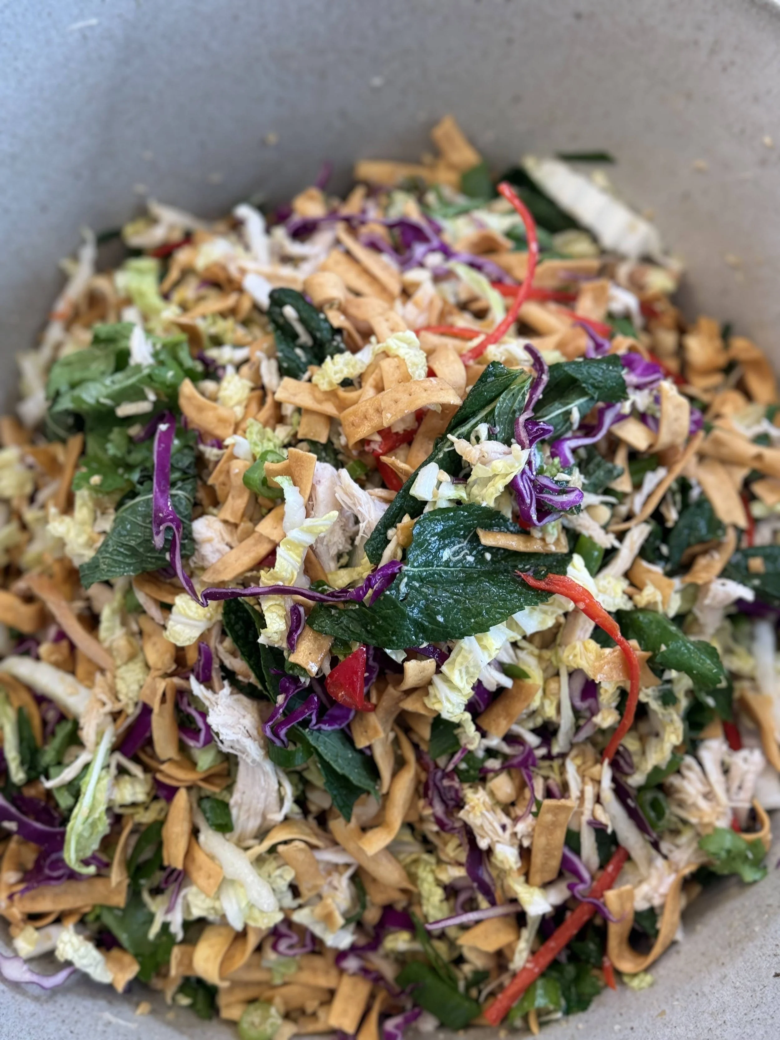 - Dress salad just before serving. And smoother with noodles and peanuts to serve.